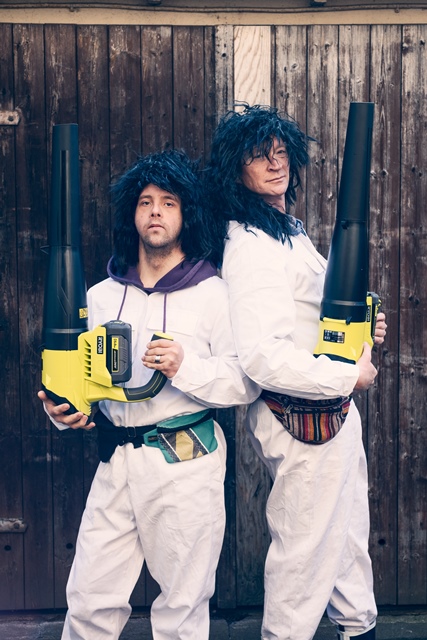 Zwei Männer, zwei Laubbläser, eine Handvoll Kostüme, ein Tusch, und los geht der Spaß mit dem Wind auf Knopfdruck: „FöhnFrisuren“ ist ein kühn charmanter