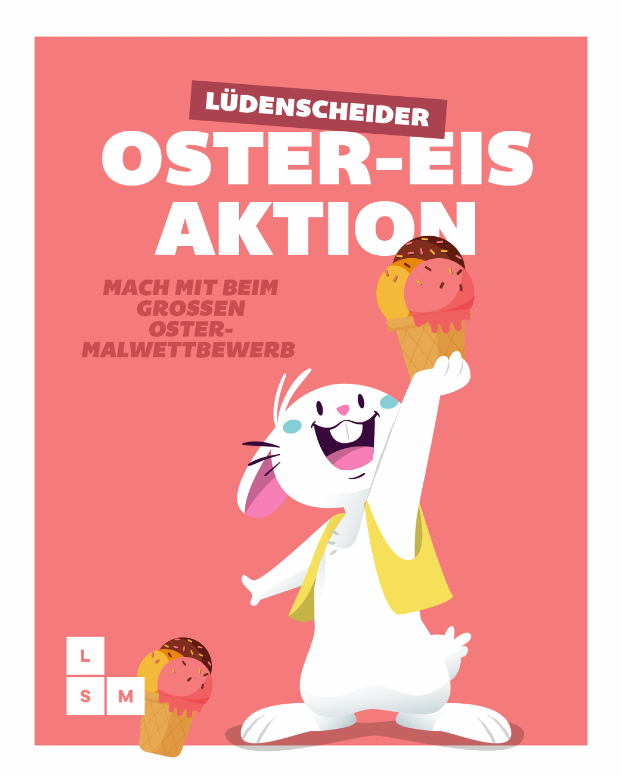 Hier erhaltet ihr die Malvorlage der Ostereis-Aktion. Malt diese schön aus und gebt sie mit euren Kontaktdaten auf der Rückseite bei den teilnehmenden Eisdielen bis spätestens 12. April ab. Im Gegenzug erhaltet ihr ein leckeres Ostereis und habt die Chance auf tolle Gewinne. Infos zu den Gewinnen findet ihr auf dem Flyer.
